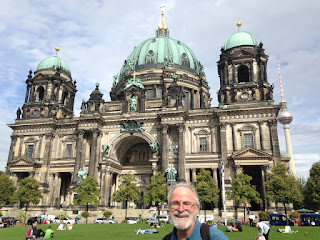 At Alexanderplatz, the end of our day's sightseeing, we did a little shopping (since I had forgotten to bring my sunscreen, and was now the color of Sebastian the crab in the Little Mermaid). We also looked into the Marien Church from 1270 which is just to the base of the 1,200 foot tall TV tower that dominated East Berlin for years. The organist was playing the giant pipe organ, so we sat and rested as we had an impromptu concert.